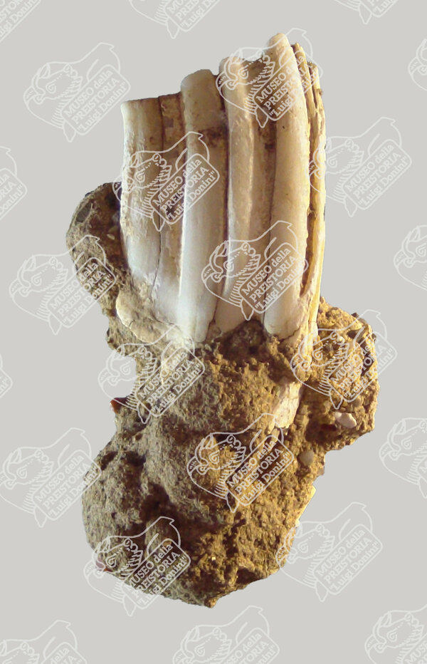 Questa collezione è completata dalla documentazione relativa ai fossili di grandi mammiferi quaternari estinti: anche in questo caso si tratta di resti isolati o frammentari rinvenuti in unità sedimentarie poste a valle dei Gessi e risalenti al Pleistocene iniziale. Su tutti spicca, per stato conservativo, il grande molare di Mammuthus meridionalis, segnalato e descritto dal geologo Giovanni Capellini nel 1916 (calco per gentile concessione di SMA - Museo Geologico "G. Capellini - BO).