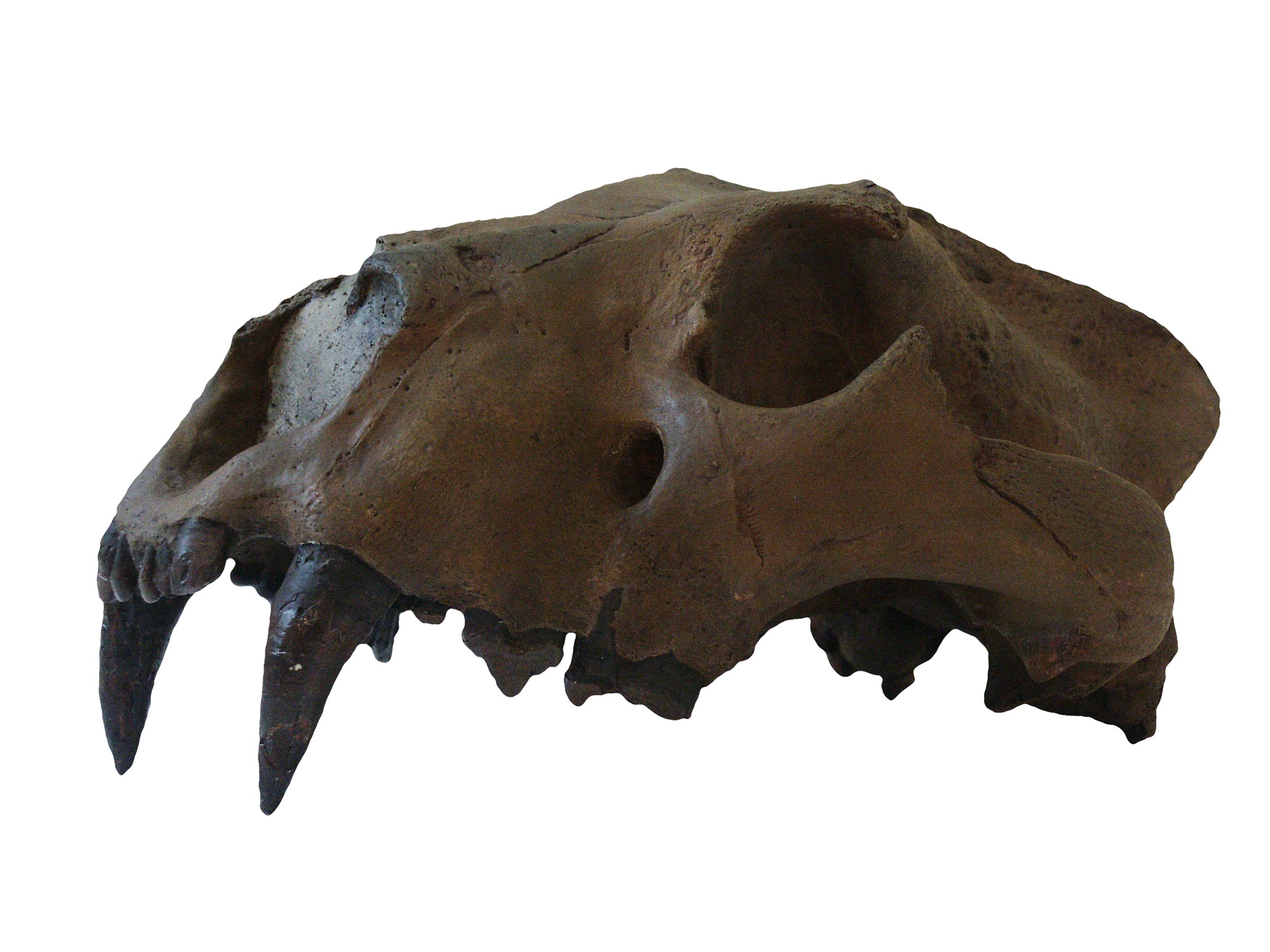 Calco di cranio di leone delle caverne