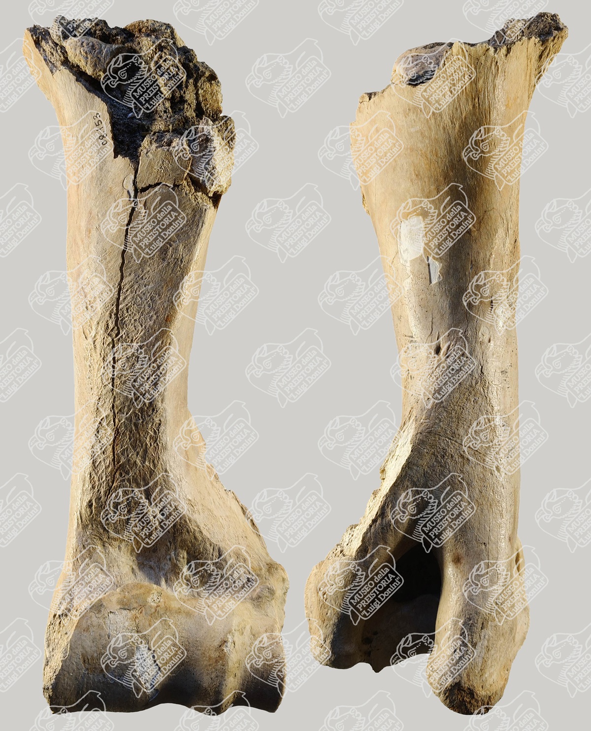 Omero di Bisonte delle steppe in norma craniale (sinistra) e in norma caudale (destra)
