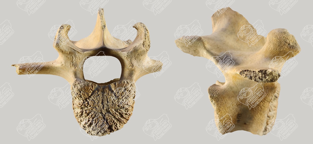 Vertebra dorsale di Artiodattilo in norma craniale (sinistra) e in norma laterale (destra)