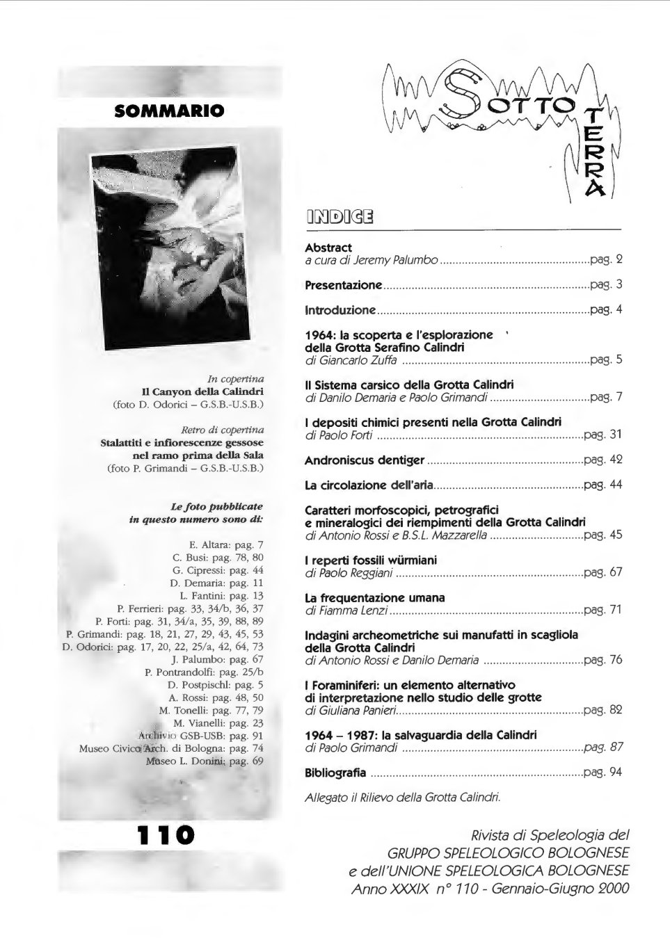 - Titolo ContenitoreRivista Sottoterra, Anno XXXIX, n. 110, Gennaio-Giugno 2000