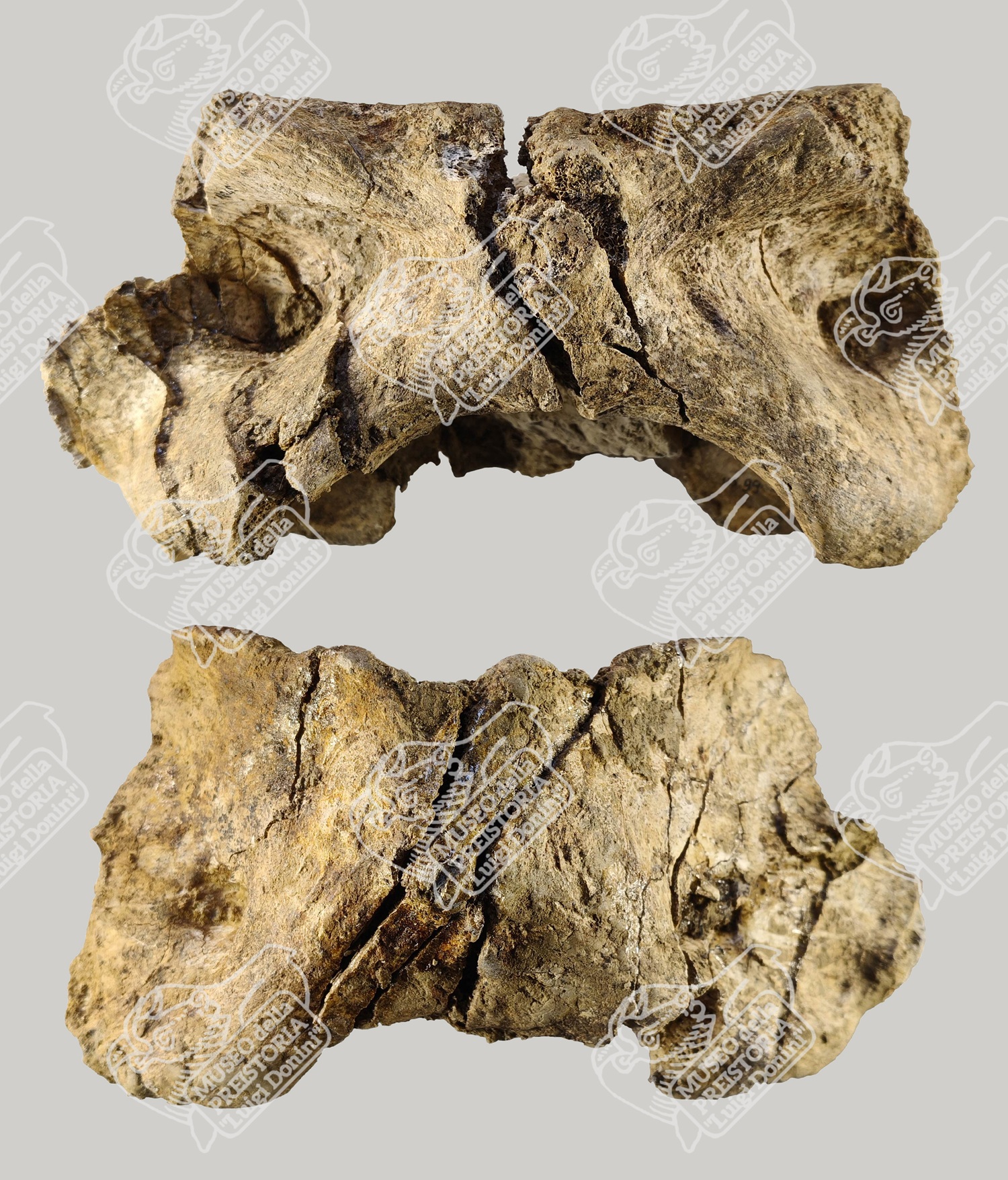 Atlante di Bisonte delle steppe in norma ventrale (sopra) e in norma dorsale (sotto)