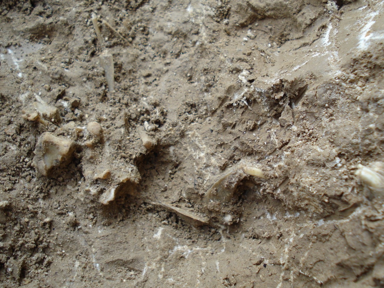 Fotografia che ritrae un particolare dello scheletro completo in connessione anatomica di una lepre (reperto 09.061) in fase di scavo