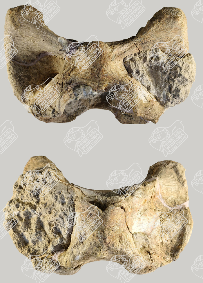 Atlante di Bisonte delle steppe in norma ventrale (sopra) e dorsale (sotto)