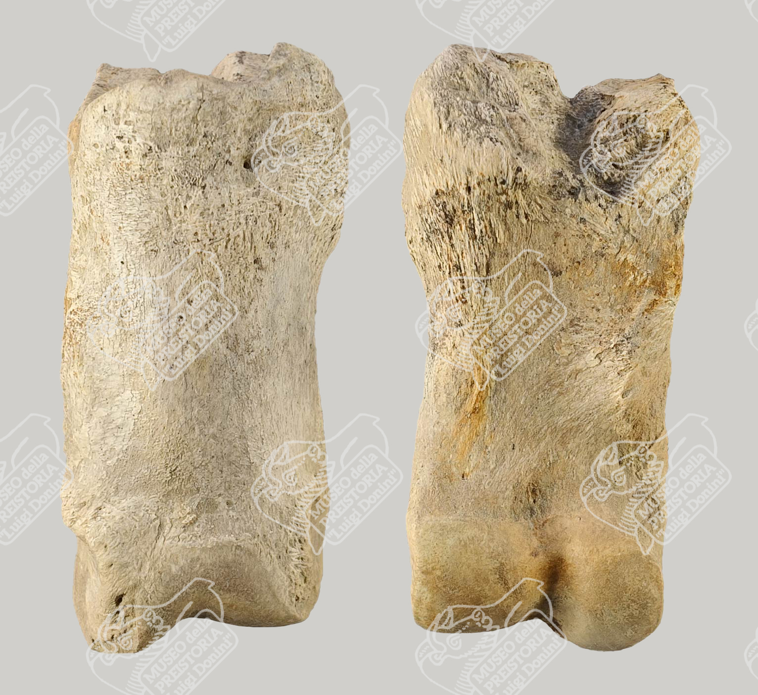 Prima falange di Bisonte delle steppe in norma dorsale (sinistra) e in norma palmare (destra)