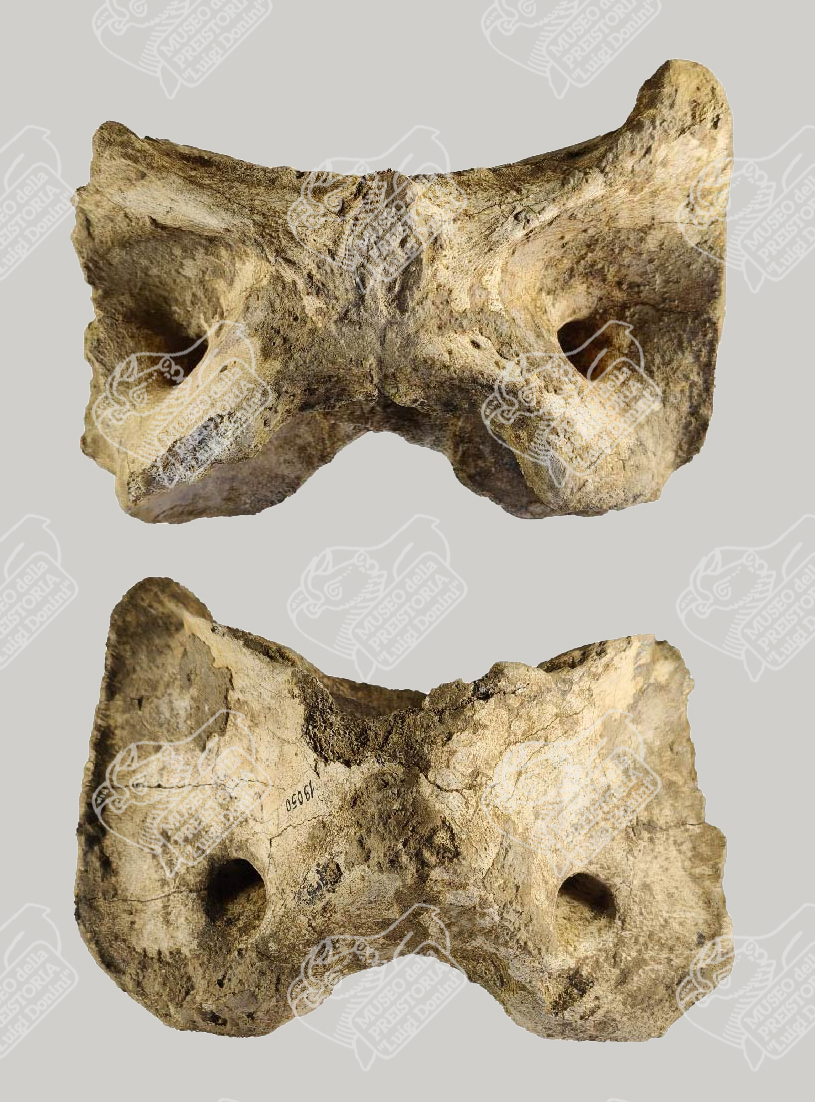 Atlante di Bisonte delle steppe in norma ventrale (sopra) e dorsale (sotto)