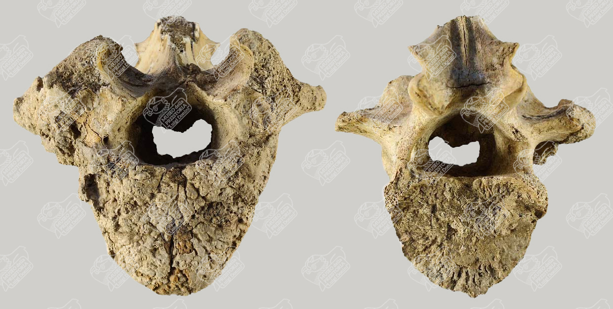 Vertebra di Bisonte delle steppe in norma craniale (sinistra) e in norma caudale (destra)