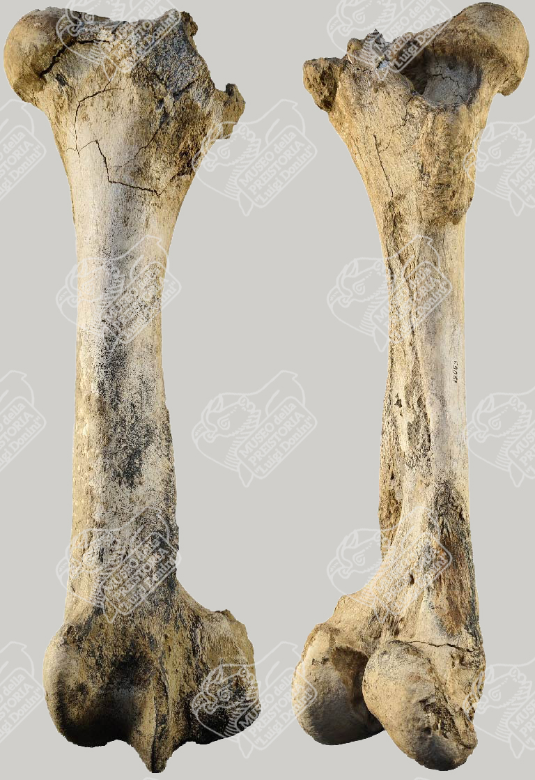 Femore di Bisonte delle steppe in norma craniale (sinistra) e in norma caudale (destra)