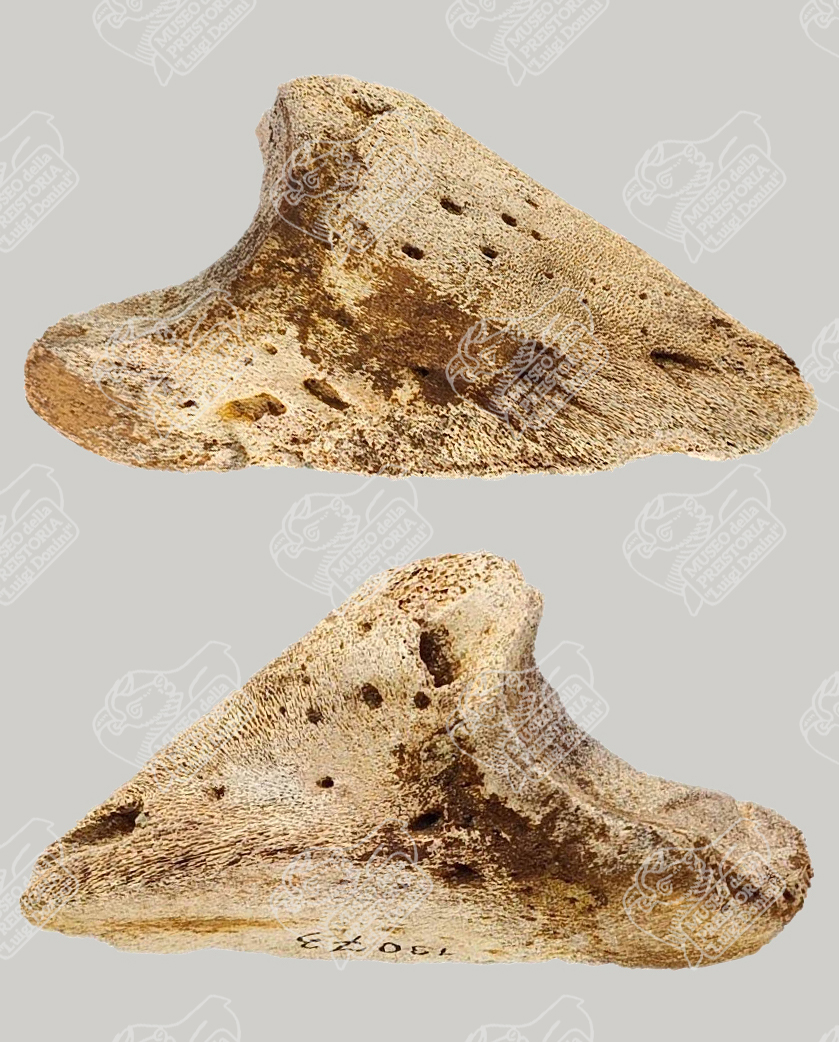 Terza falange sinistra di giovane Bisonte delle steppe in norma laterale (sopra) e mediale (sotto)