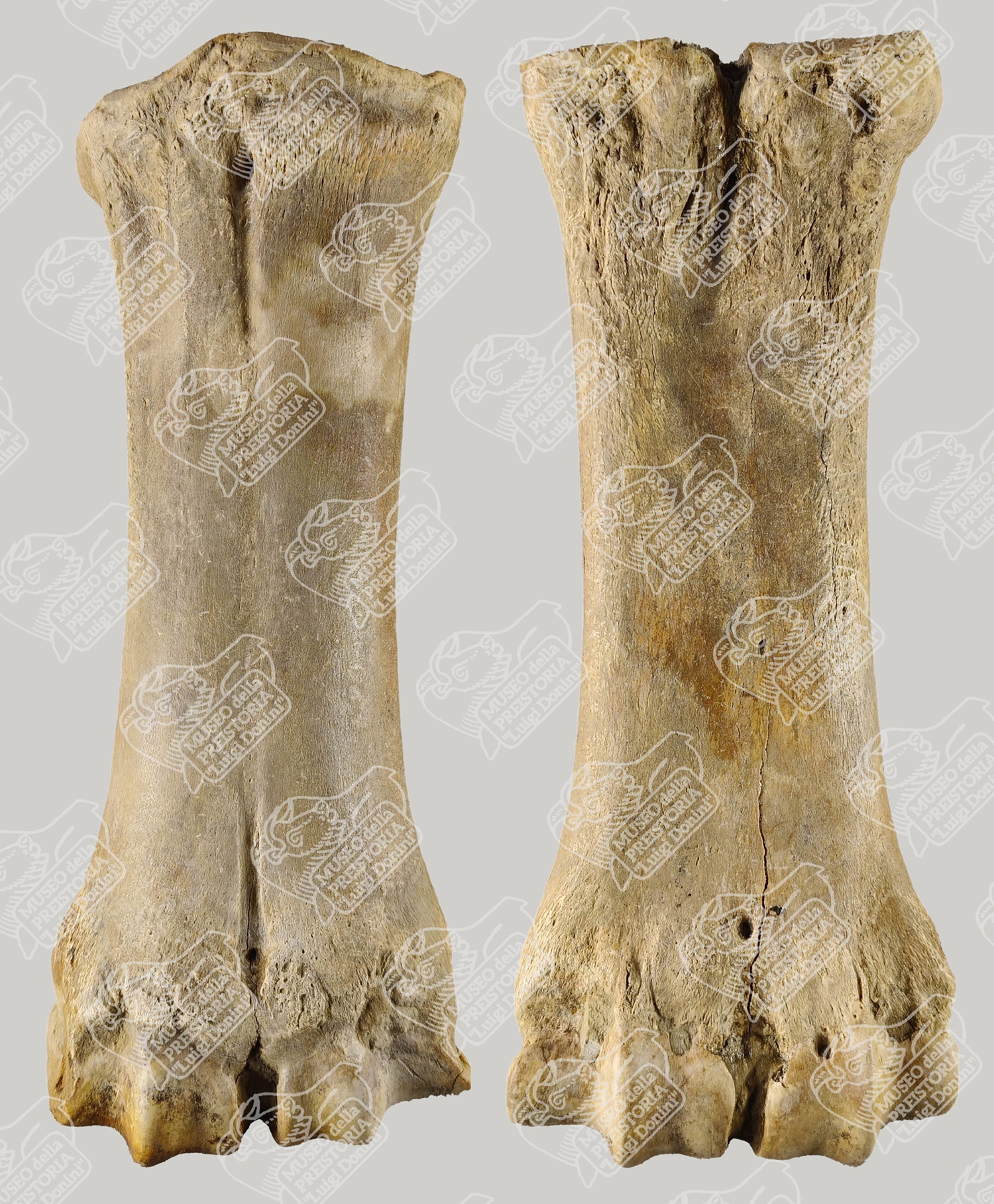 Metacarpo di Bisonte delle steppe in norma dorsale (sinistra) e palmare (destra)