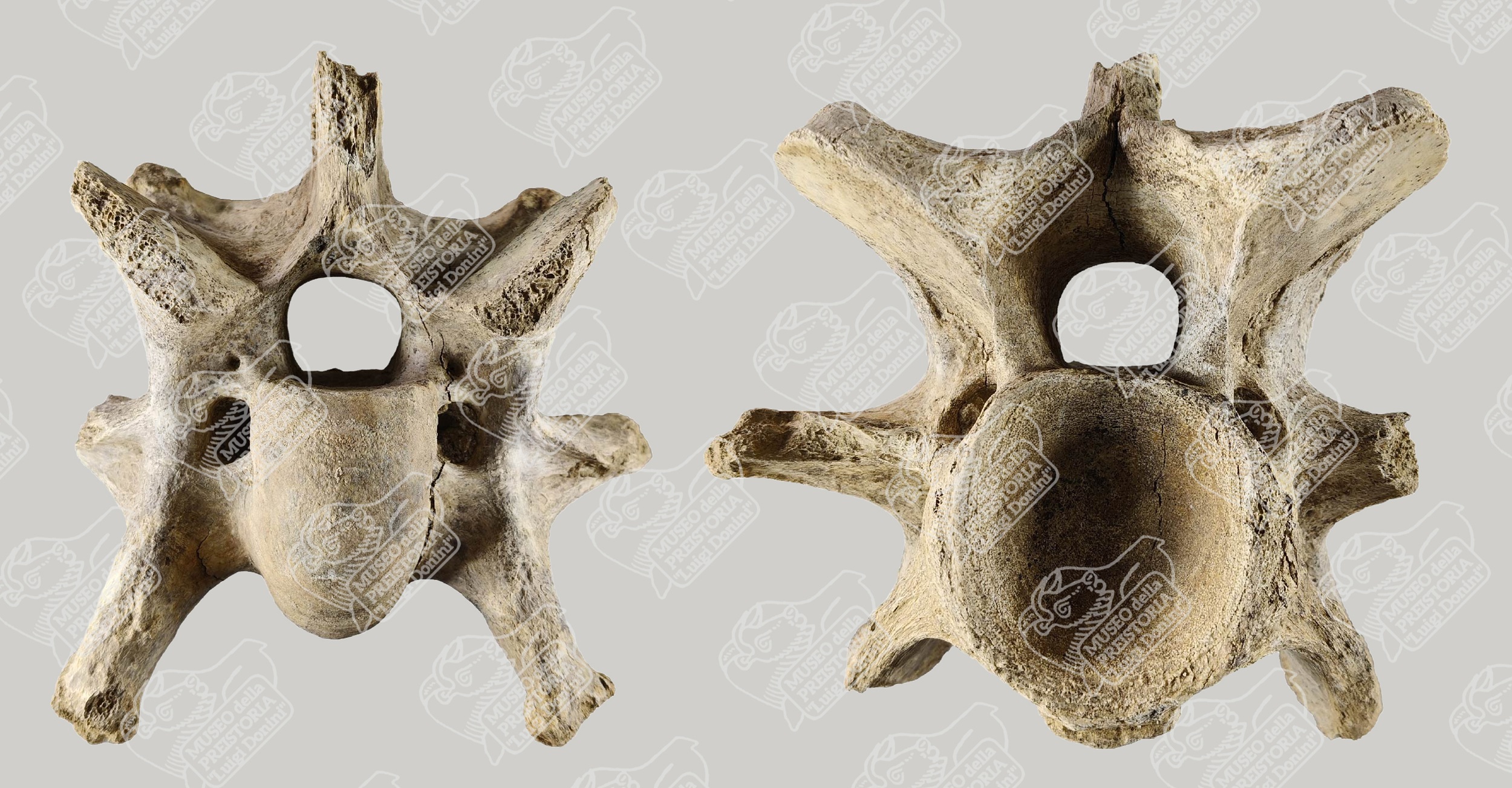 Vertebra cervicale di Bisonte delle steppe in norma craniale (sinistra) e in norma caudale (destra)