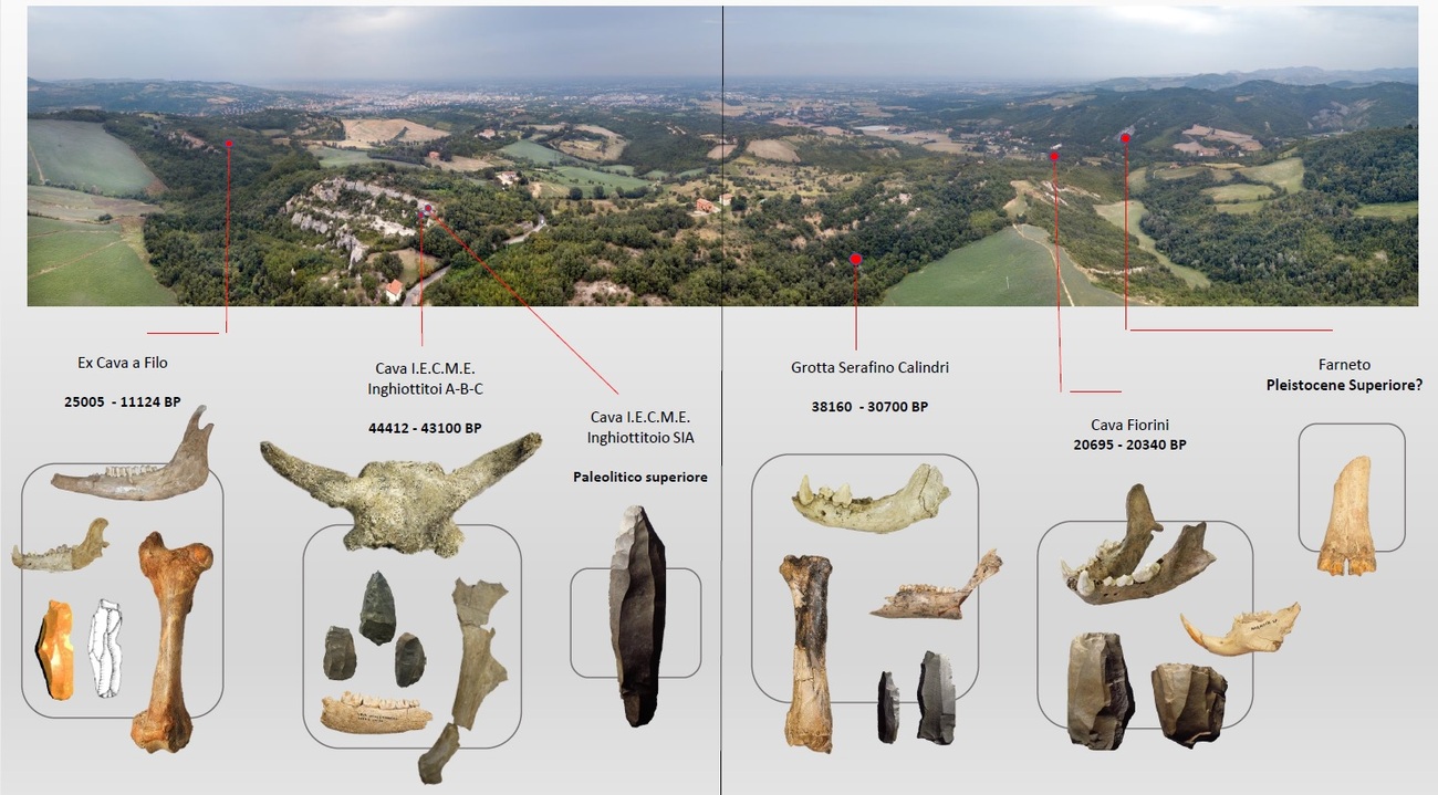 - NoteFoto: M. Mioli; rielaborazione: F. Grazioli; pubblicato in (a cura di) G. Nenzioni, F. Lenzi, Geopaleontologia dei Gessi Bolognesi. Nuovi dati sui depositi carsici del Pleistocene Superiore, 2018, pp. 206-207
