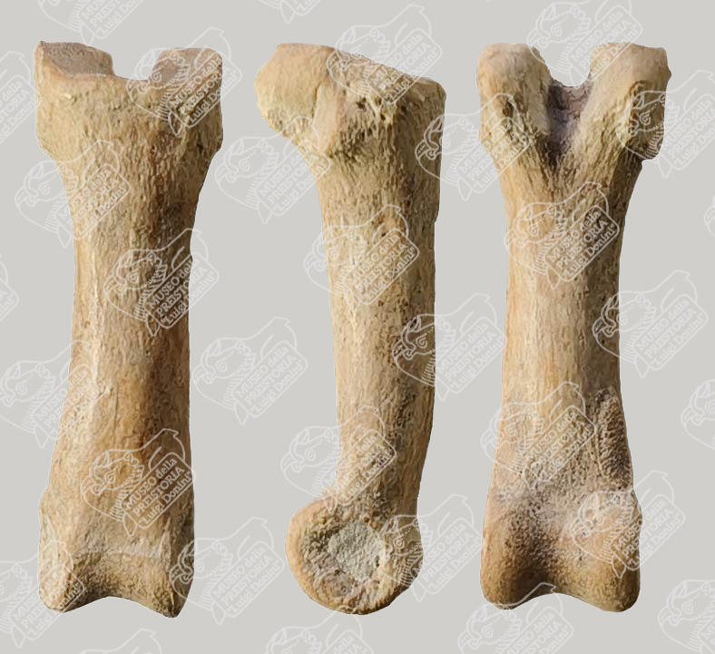 Prima falange di Lupo in norma dorsale (sinistra), in norma laterale (centro) e in norma palmare (destra)