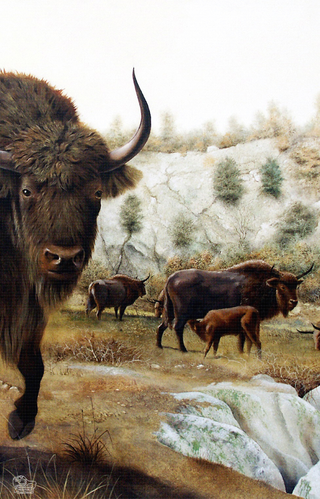 Particolare della raffigurazione pittorica di bisonte delle steppe con mandria al pascolo
