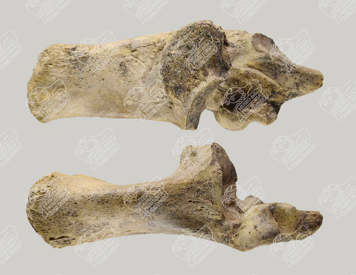 Calcagno di Bisonte delle steppe in norma dorsale (sopra) e in norma laterale (sotto)