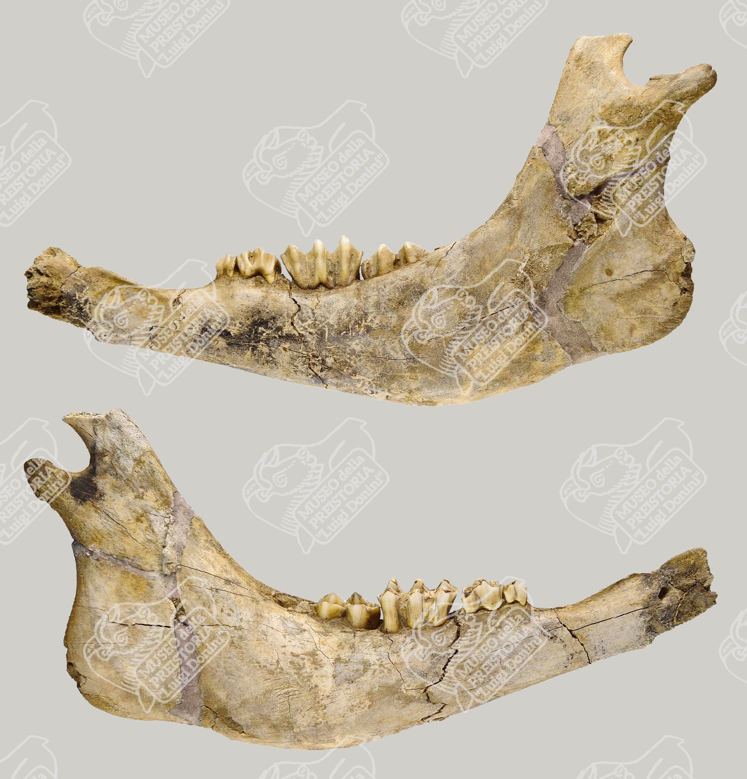 Emimandibola di Bisonte delle steppe in norma guanciale (sopra) e linguale (sotto)