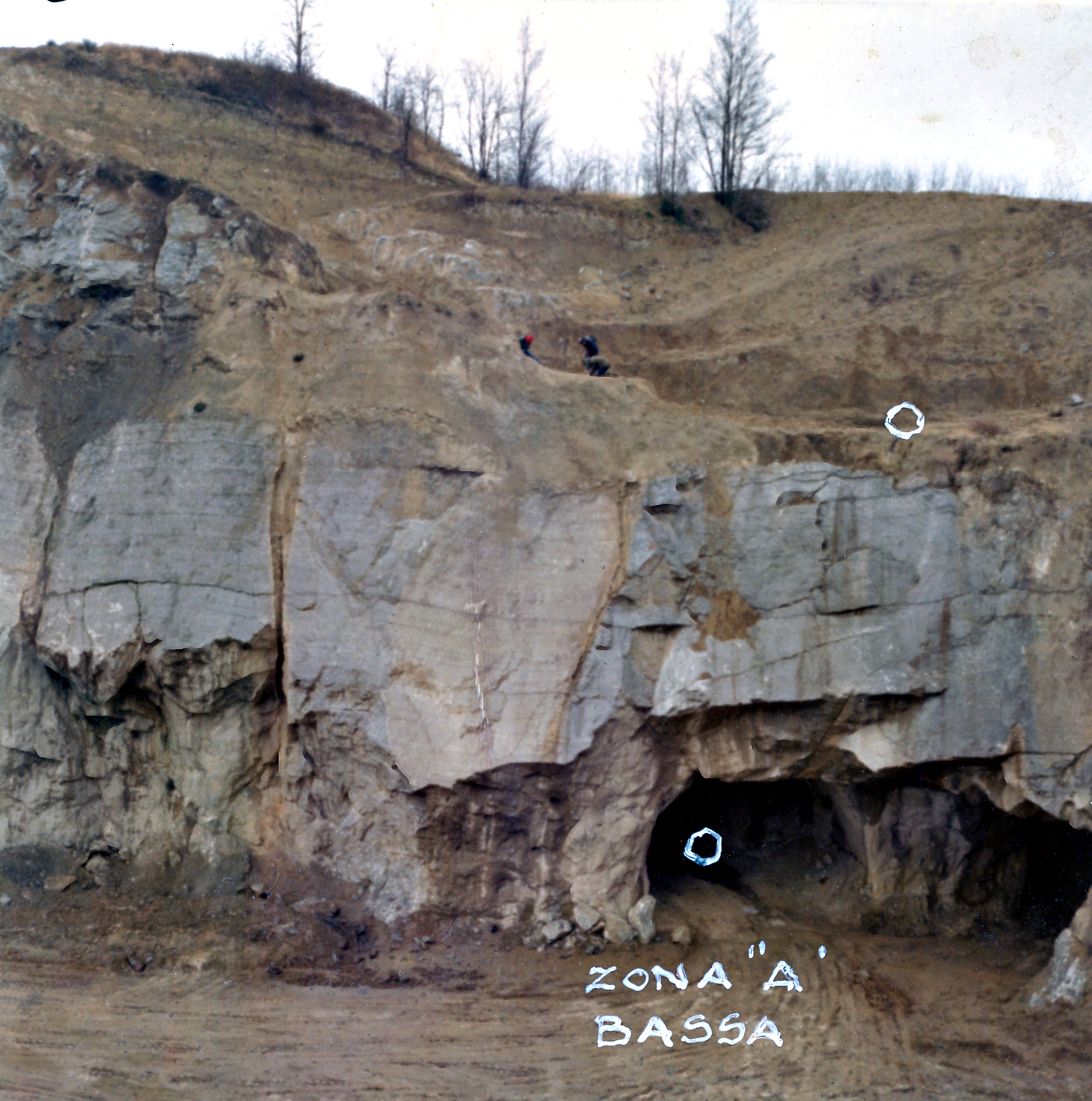 Cava I.E.C.M.E.: l'inghiottitoio A, ancora in galleria, nel 1974; sul fronte alto della cava è visibile il sito SIA