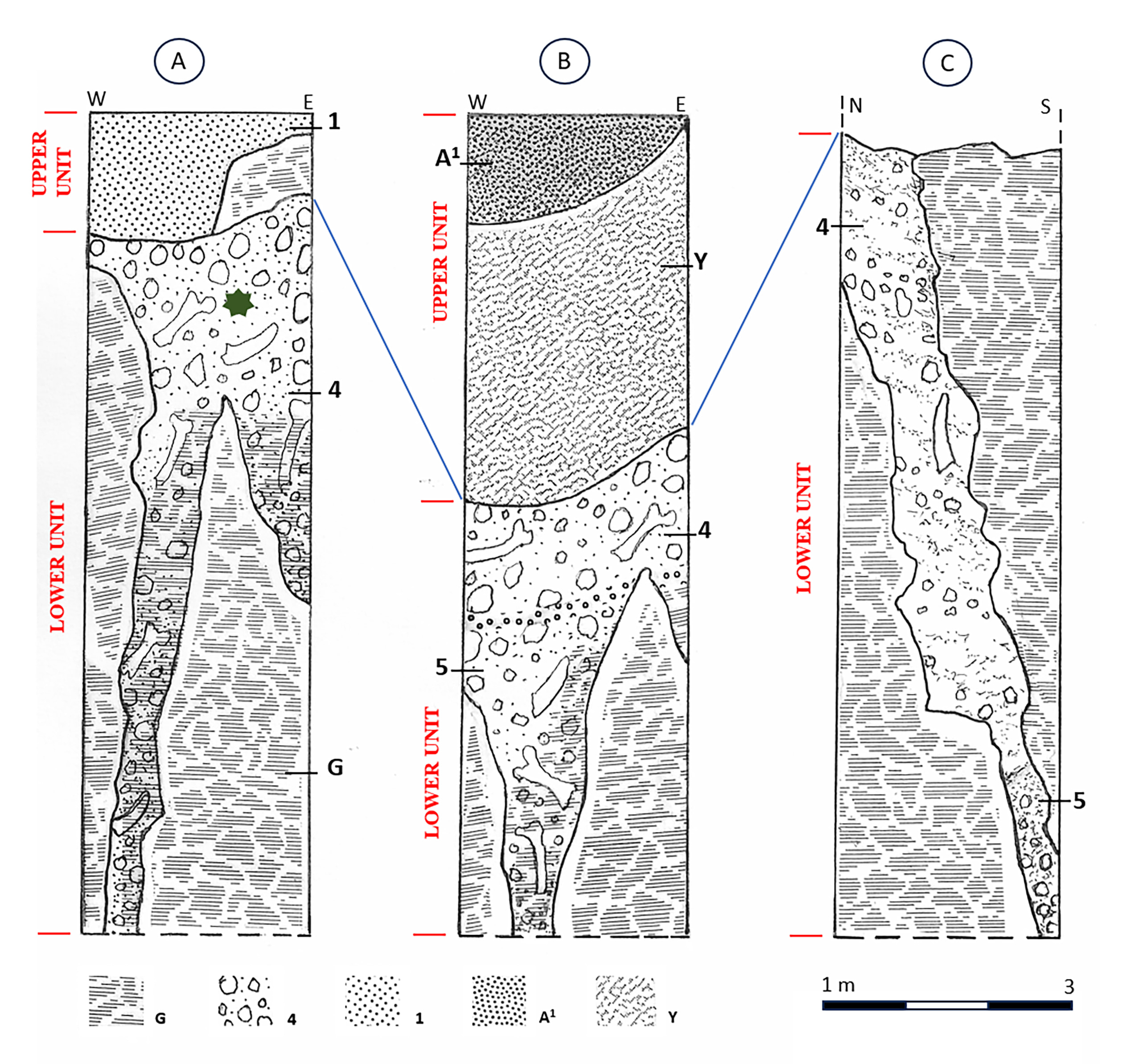 Sezione stratigrafica degli inghiottitoi A, B e C della cava I.E.C.M.E.