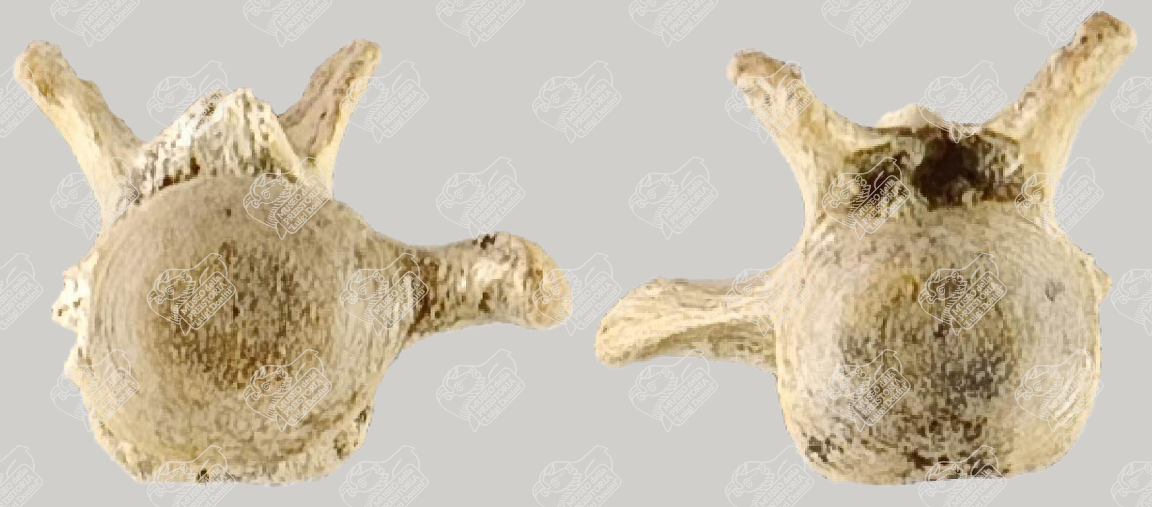 Vertebra caudale di Lupo in norma craniale (sinistra) e caudale (destra)