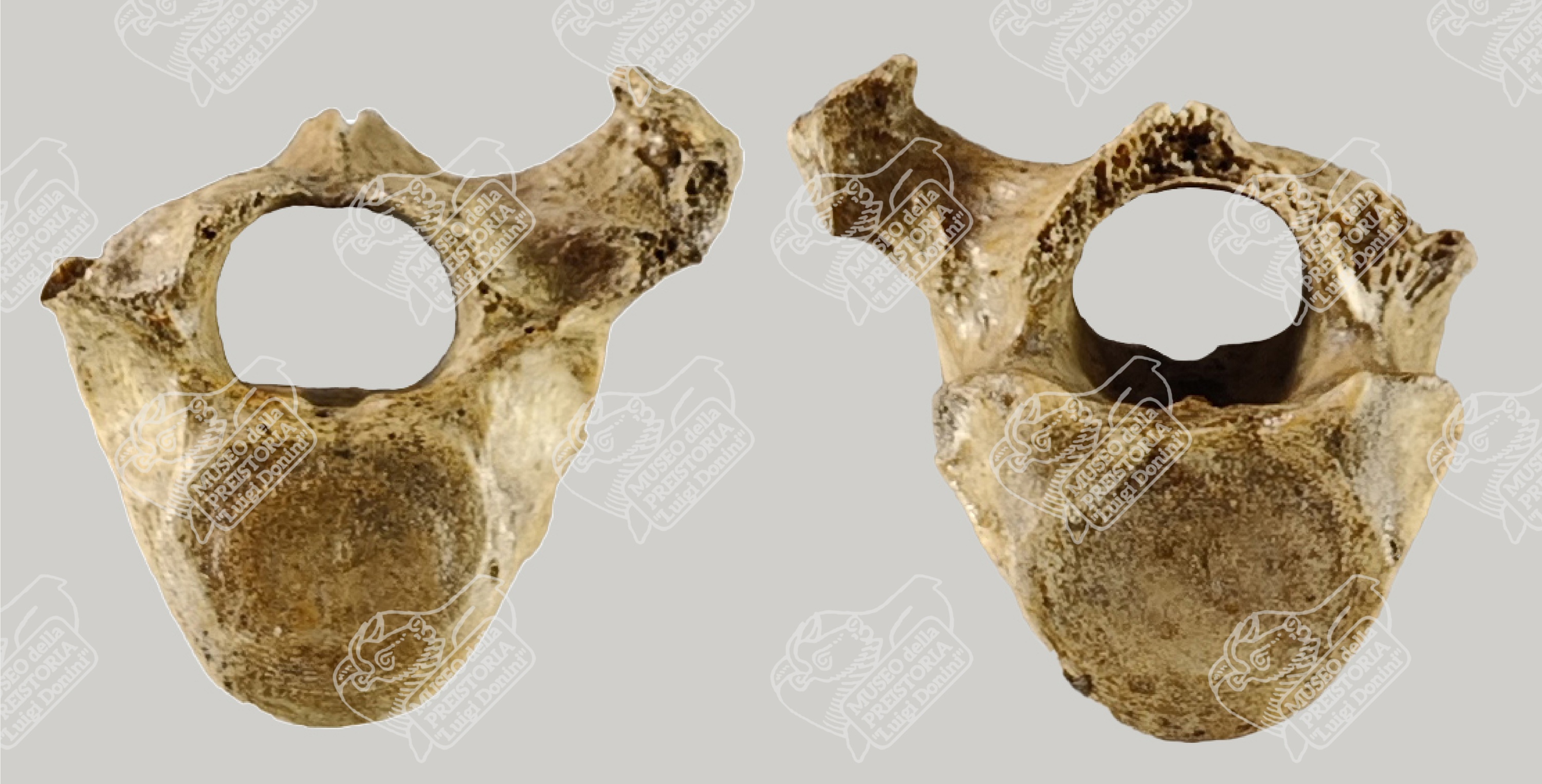 Vertebra dorsale di Lupo in norma craniale (sinistra) e caudale (destra)