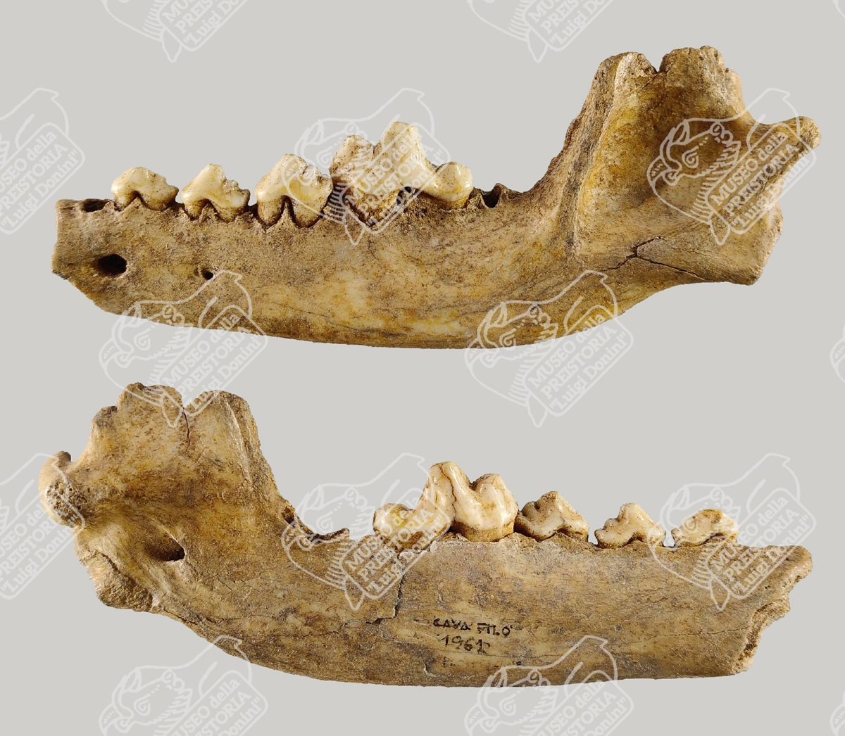 Emimandibola sinistra di Lupo in norma guanciale (sopra) e linguale (sotto)