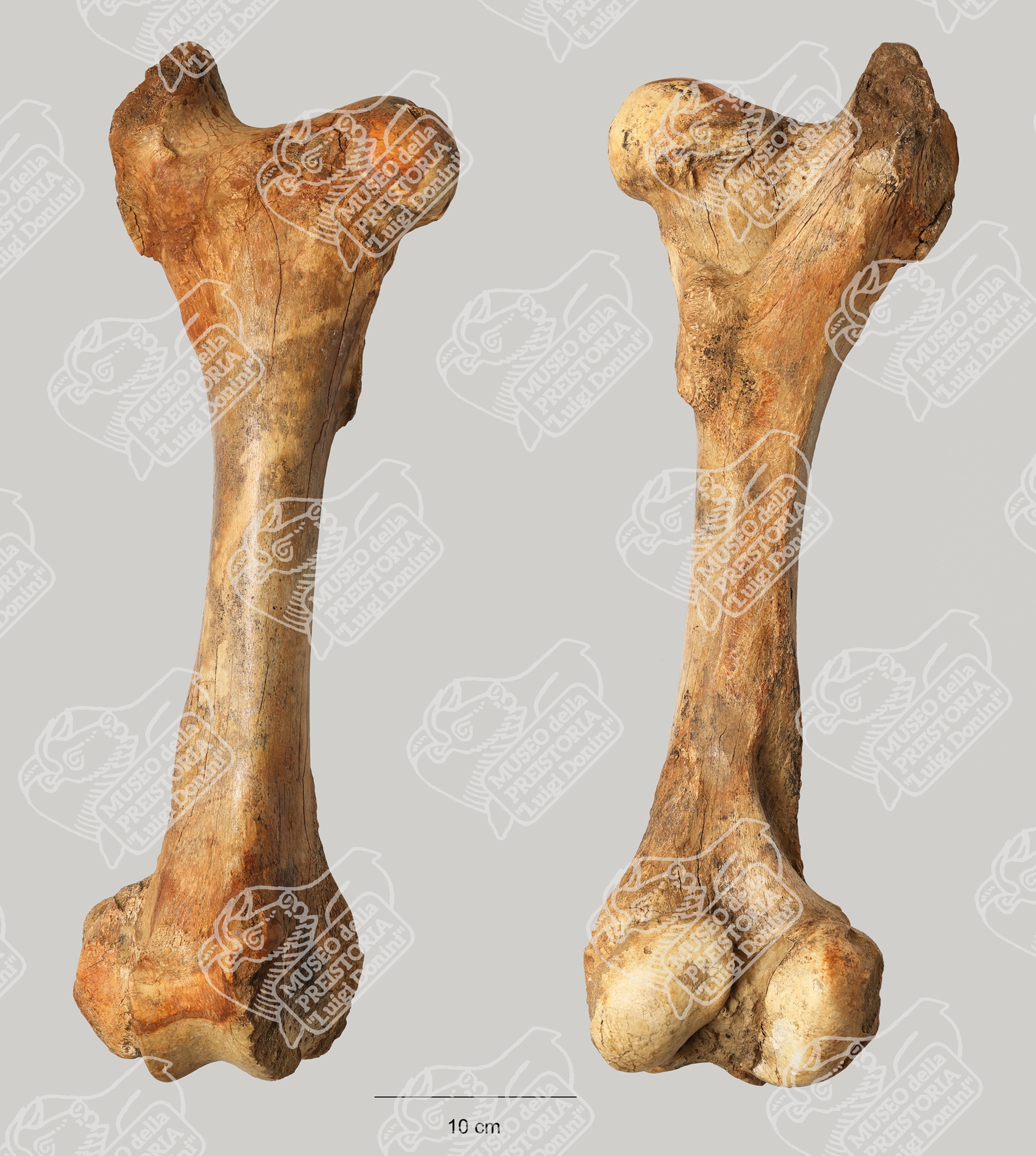 Femore destro di Bisonte delle steppe in norma craniale (sinistra) e caudale (destra)