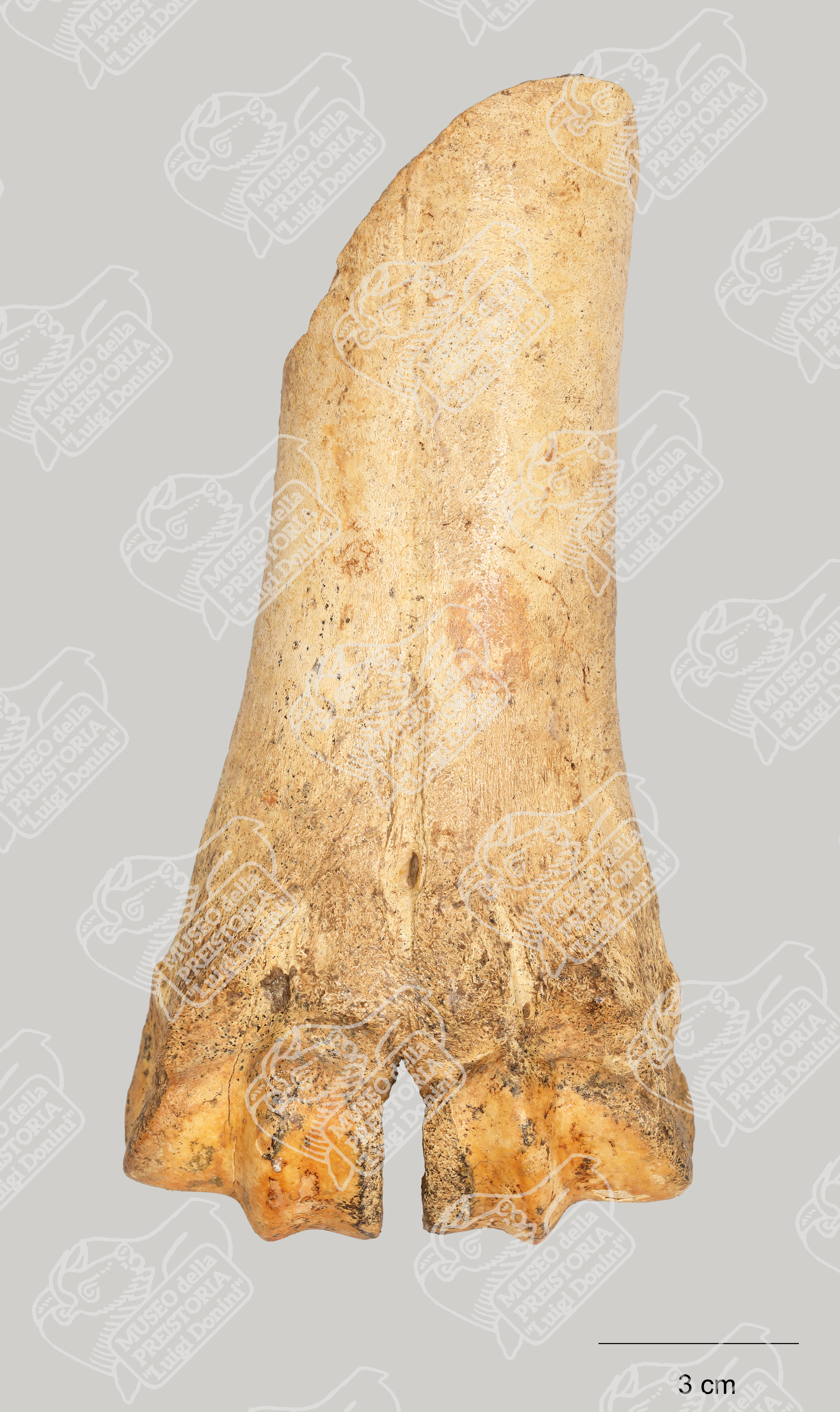 Frammento con epifisi distale di metacarpo di Uro in norma dorsale