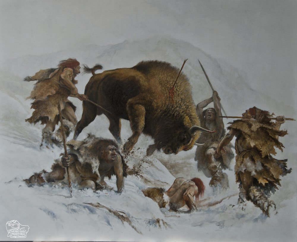 - OggettoNeanderthal scena di caccia al bisonte delle steppe