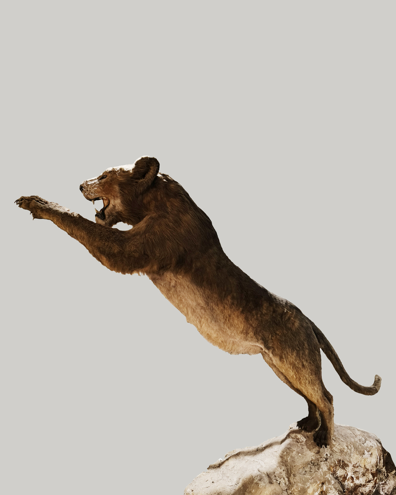 Riproduzione in scala 1:1 di leone delle caverne