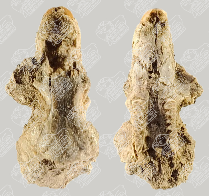 Cranio di Microtino in norma dorsale (sinistra) e basale (destra)